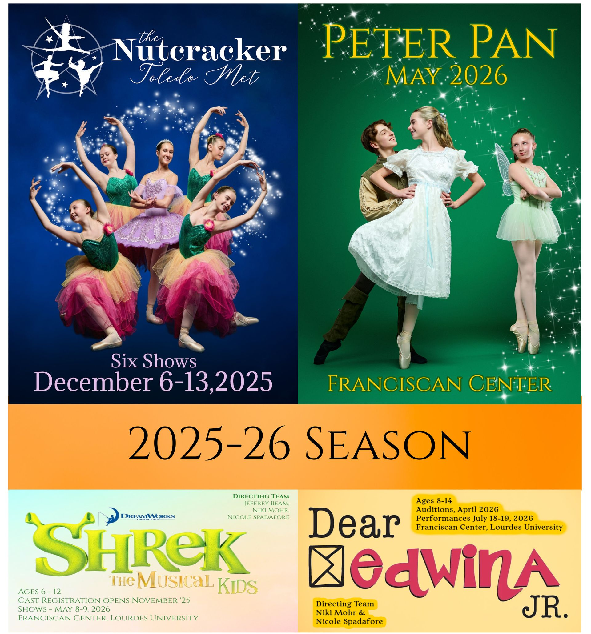 Toledo Met is committed to providing high quality performance opportunities to students as young as 3 years old. Productions are staged at the Franciscan Center of Lourdes University with state of the art technical support and topnotch theatrical enhancements including beautiful scenery and costumes. It is the mission of Toledo Met to provide students with high quality experiences in order to facilitate interpersonal growth applicable to successful endeavors both inside their chosen genre of performing arts and beyond.
